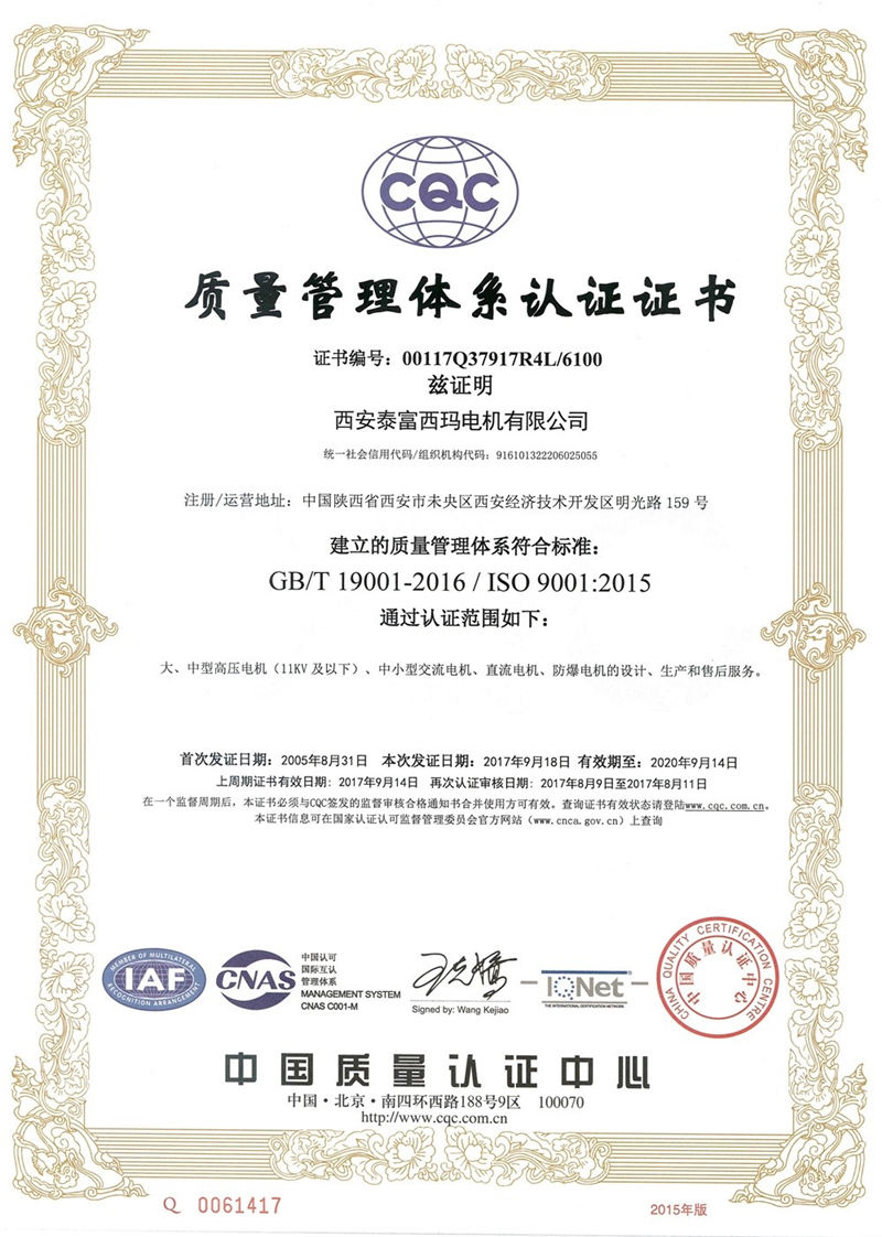 質(zhì)量管理認(rèn)證證書
